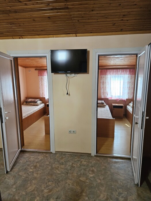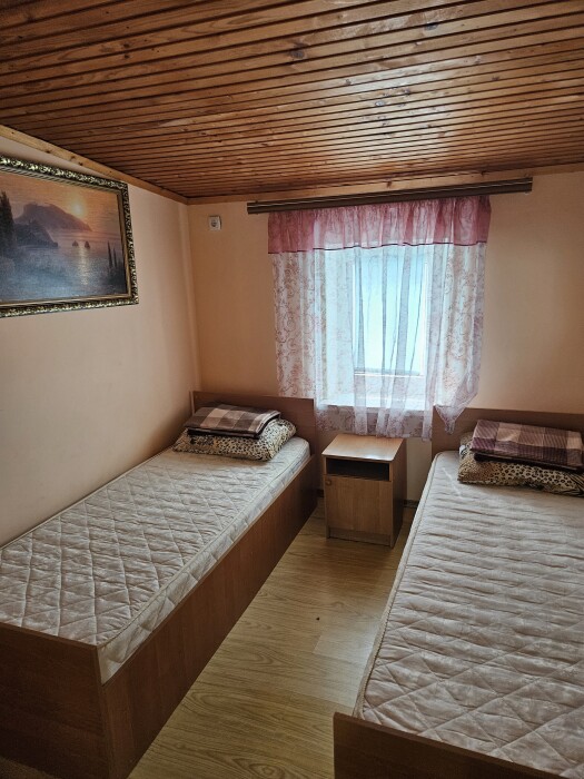 Номера состоят из двух двухместных спален, санузла и кухни. Имеются телевизоры, кондиционеры, WI-FI. На кухне холодильник, электроплита, все необходимое для приготовления и приема пищи. Постельное белье предоставляется кроме пляжных полотенец.