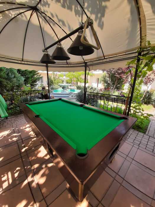 Каждый гость сможет найти себе уголок по душе: устроить посиделки на уютной скамеечке, поиграть в бильярд или настольный теннис на свежем воздухе, организовать шашлыки с друзьями. Для малышей есть детская площадка и игровая комната с большим количеством игрушек. Чтобы ребята с пользой провели каникулы и предоставили родителям время для себя, мы предлагаем Вам воспользоваться услугами профессионального воспитателя. Воспитатель имеет большой опыт работы с детьми и очень любит малышей. Для подростков и взрослых на территории есть бильярд и теннис.