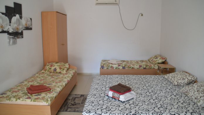 Гостевой дом предоставляет отдыхающим номера для размещения двух, трех, а также четырех человек. Номера оборудованы телевизором, кондиционером, холодильником, чайником. Условия размещения соответствуют современным стандартам качества. Уборка в номере по требованию. Смена полотенец раз в три дня, смена постельного белья раз в пять дней.