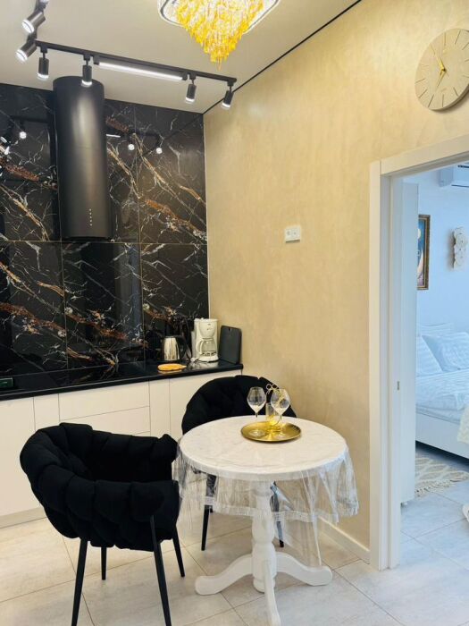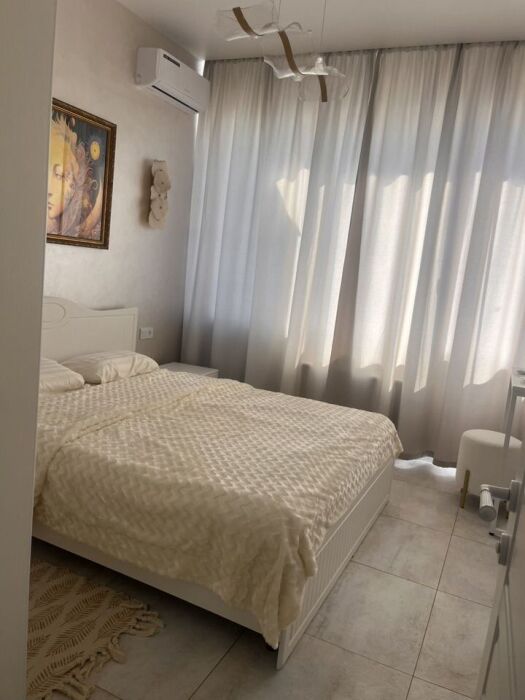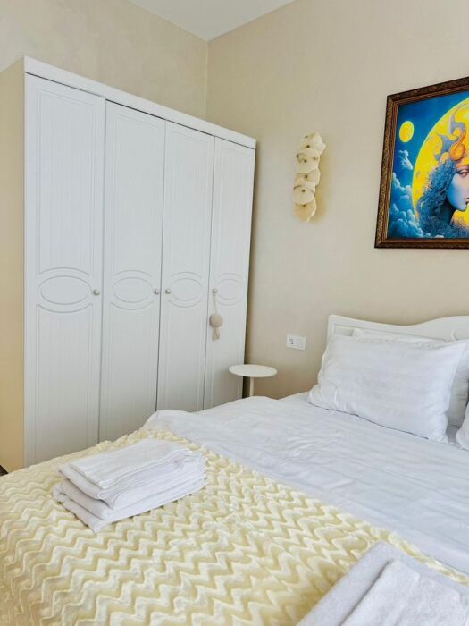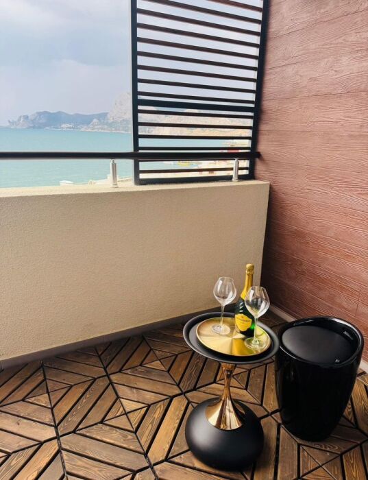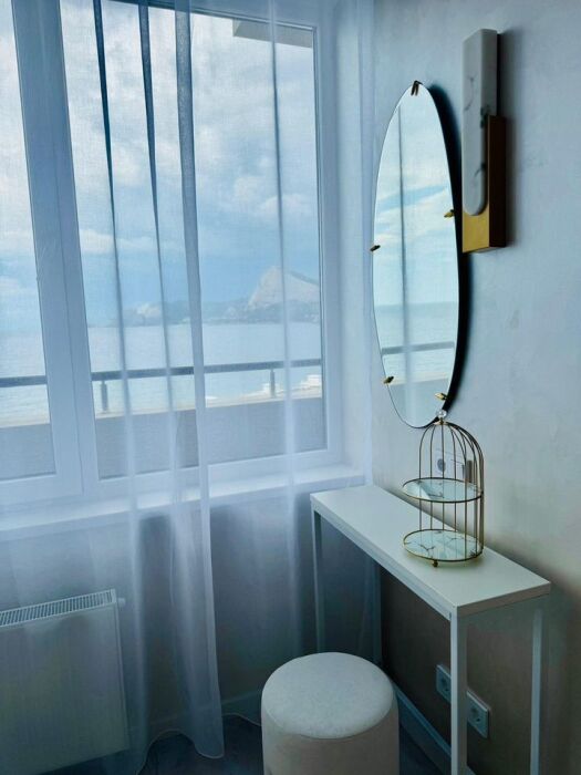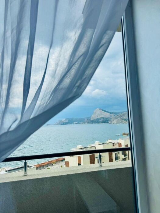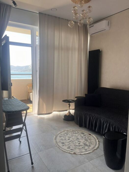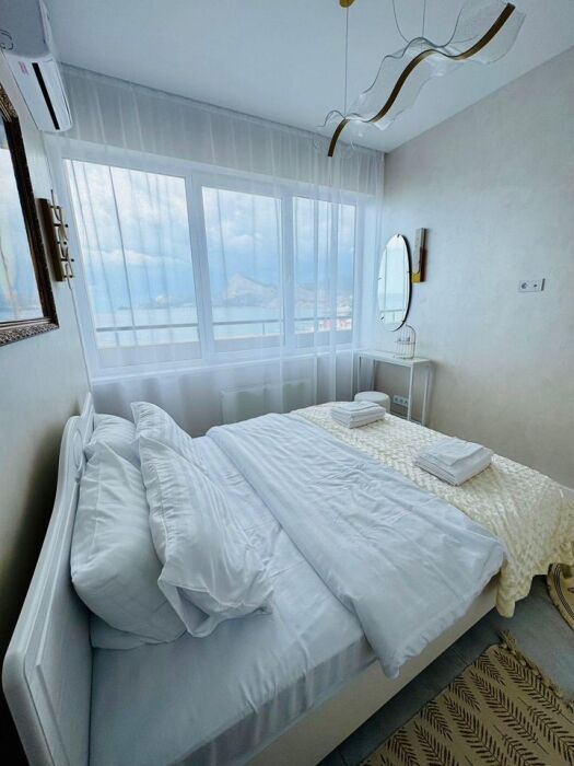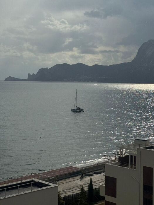 Видовая квартира с дизайнерским ремонтом в 5 корпусе «Атласа» в Судаке расположена всего в 30 метрах от моря — вы будете засыпать и просыпаться под шум волн.