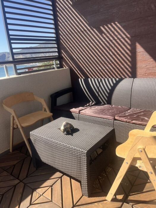 Балкон с видом на море: наслаждайтесь свежим морским бризом на уютном балконе с паркетом из лиственницы — здесь есть удобный диван и столик для отдыха.