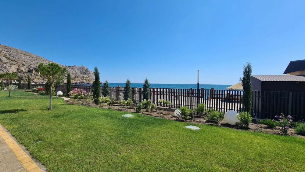 1 береговая линия. Оборудованный пляж. Бесплатная стоянка для машин. Территория комплекса оснащена современной детской площадкой, зонами отдыха.