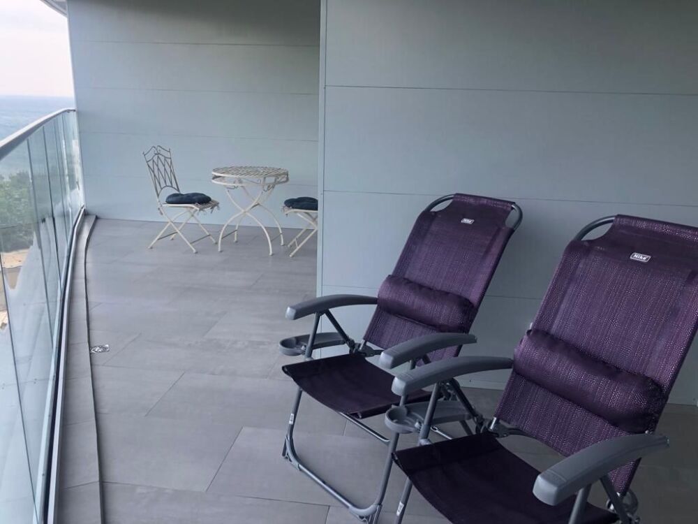 Терраса с видом на море. Просторная терраса — настоящее украшение апартамента: панорамный вид на море - идеальное место для отдыха, завтраков и закатов.