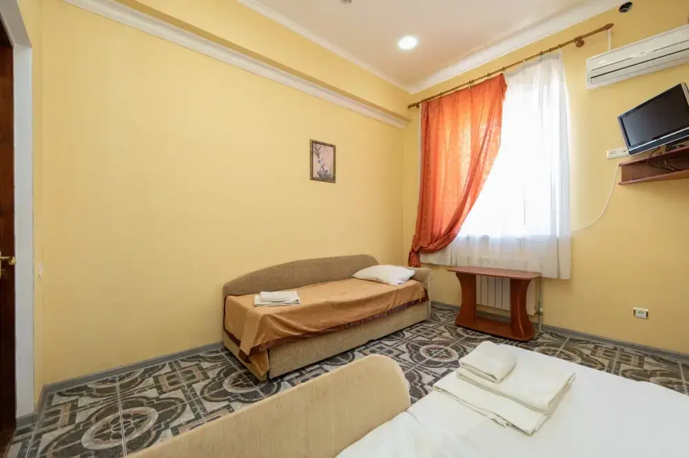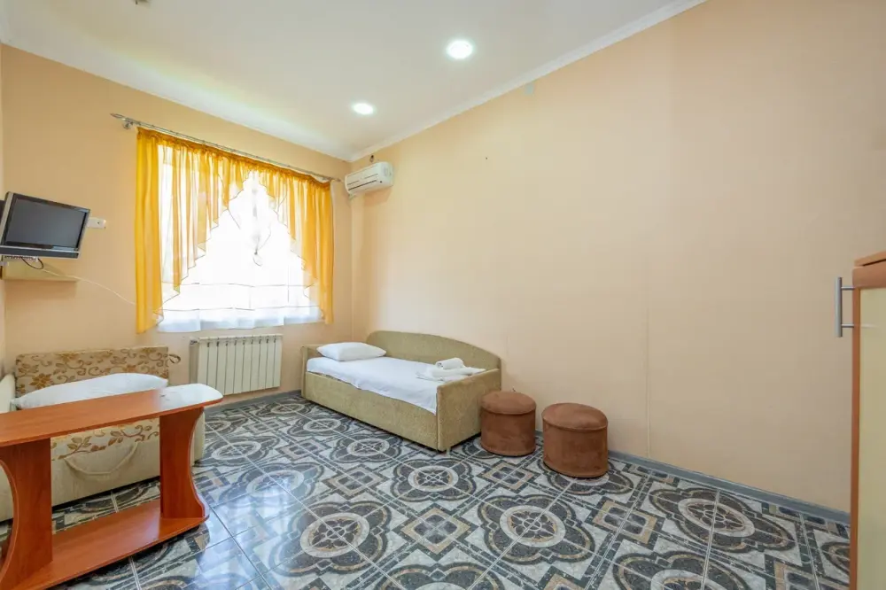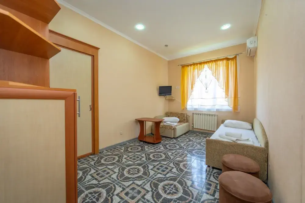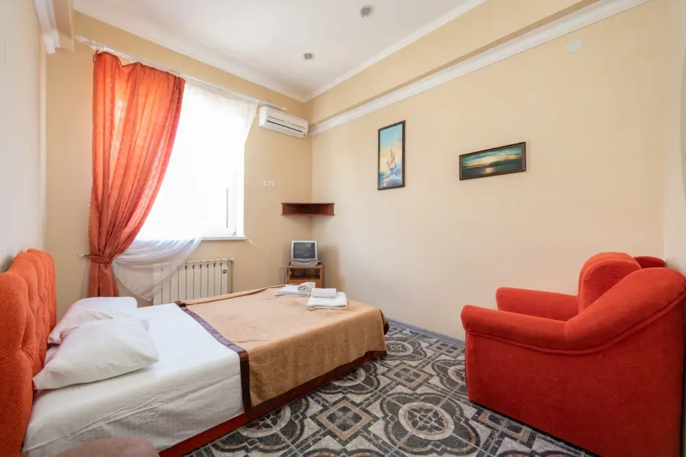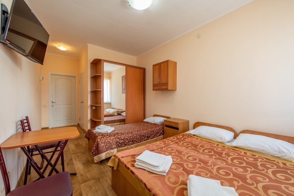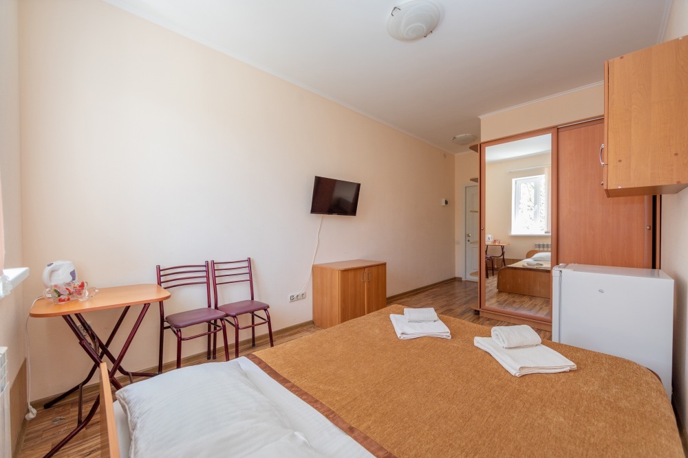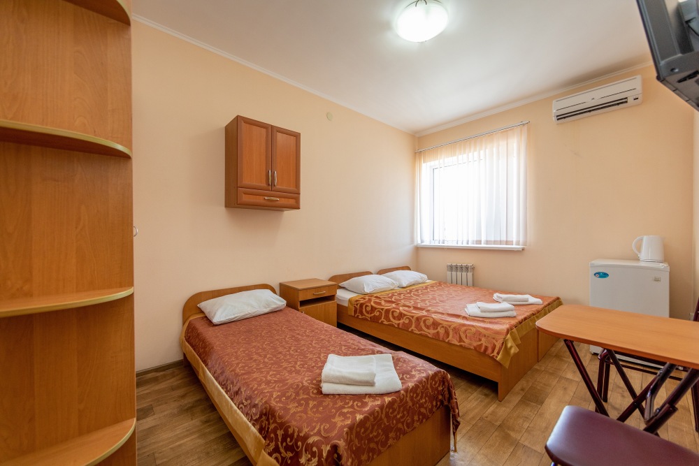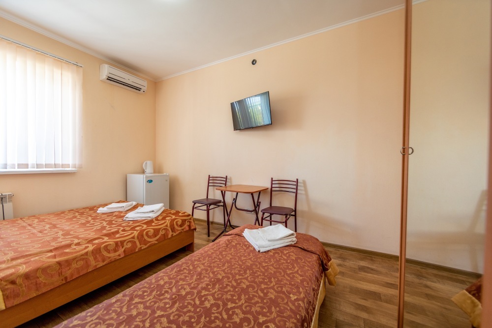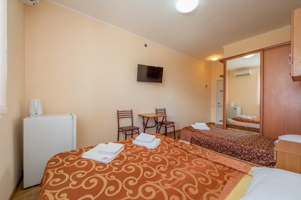 В каждом номере: кондиционер, телевизор, холодильник, санузел с душем, холодная и горячая вода круглосуточно.