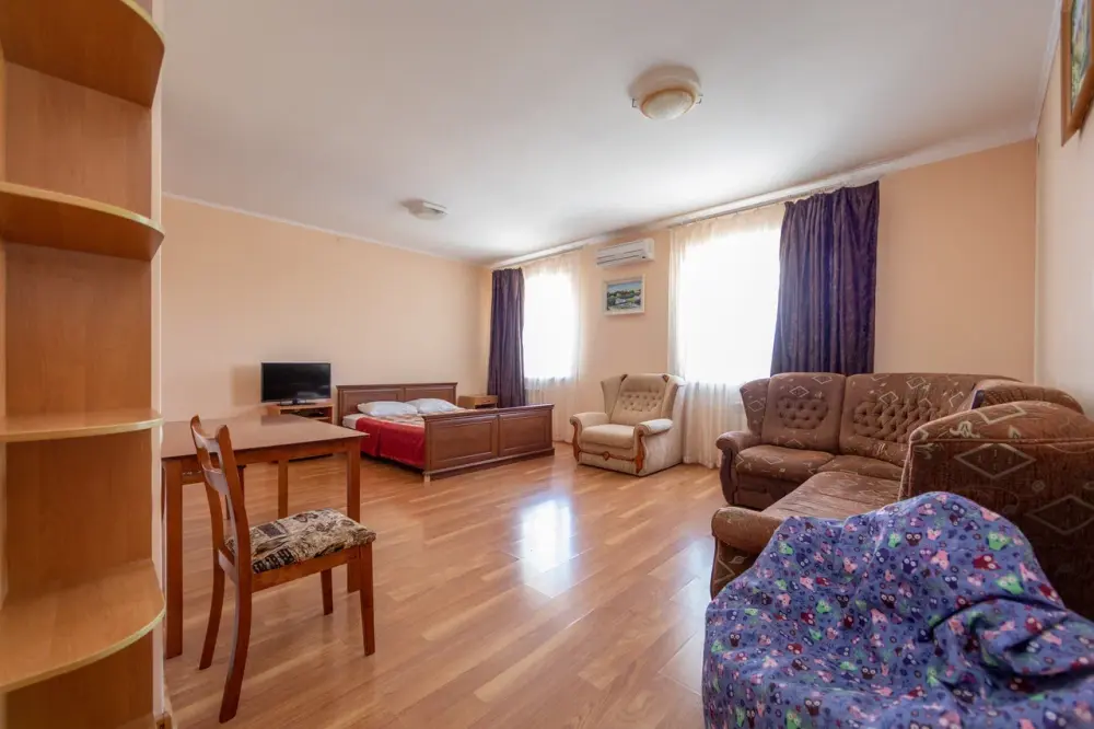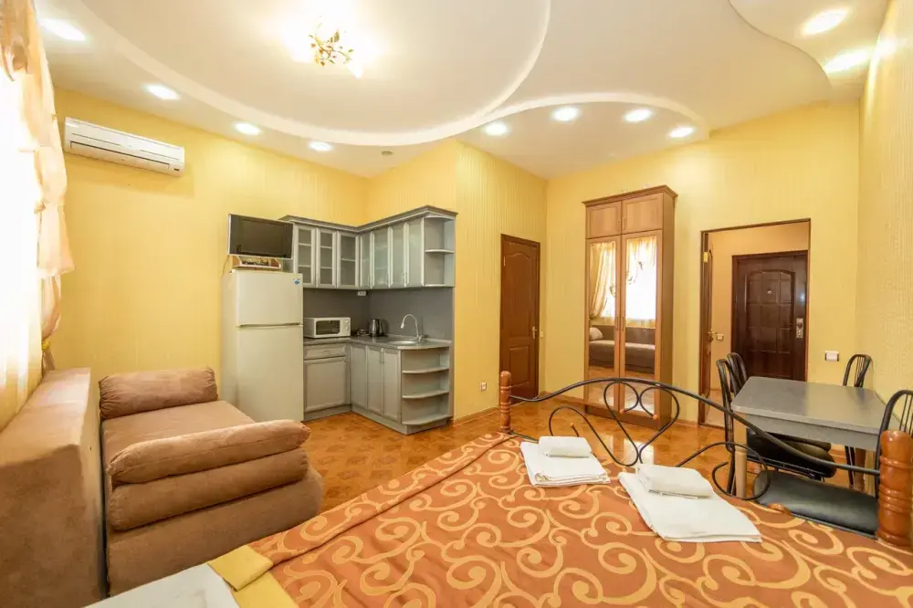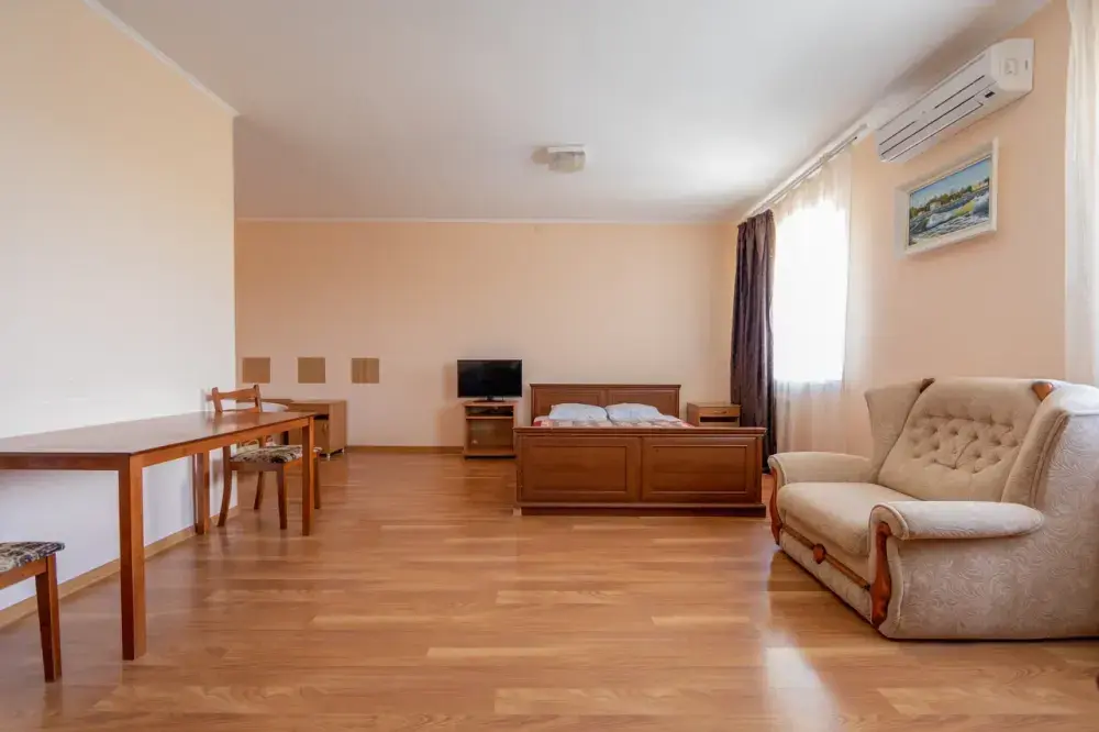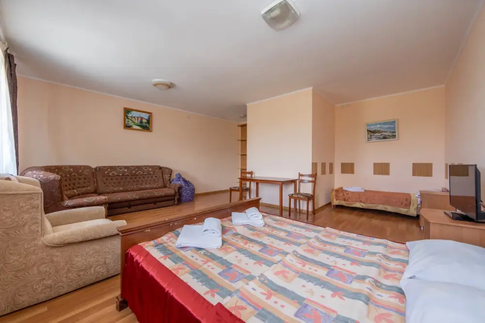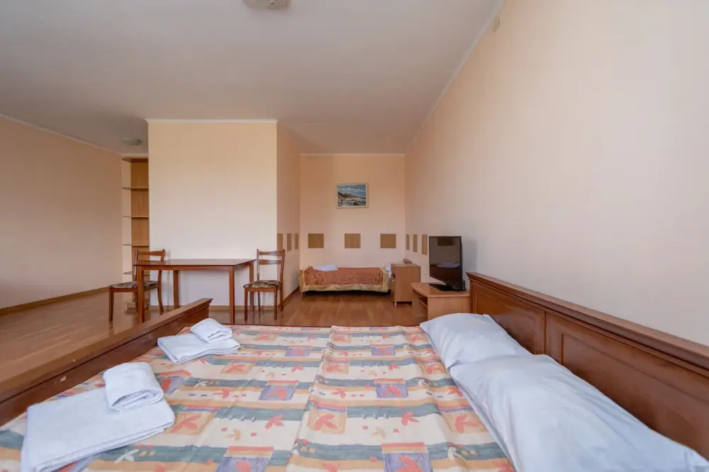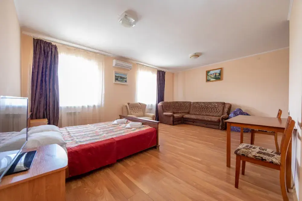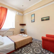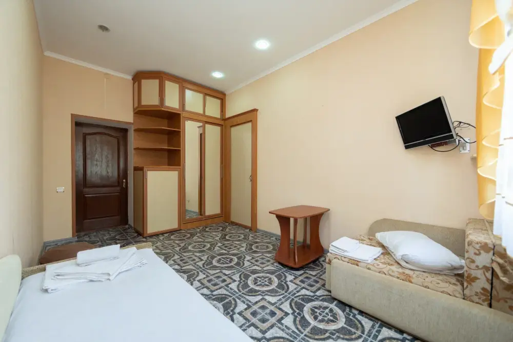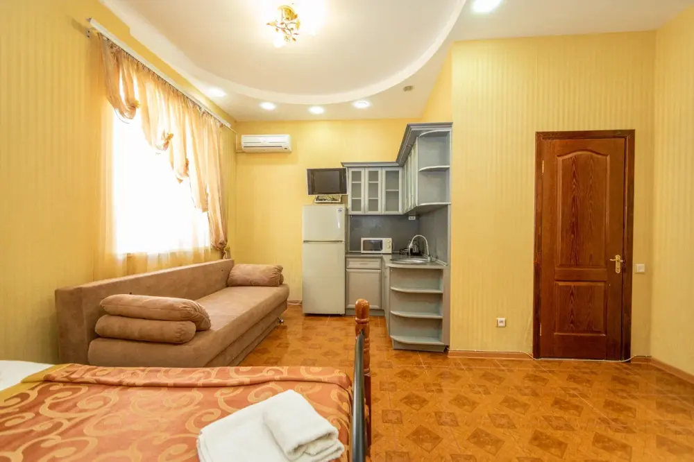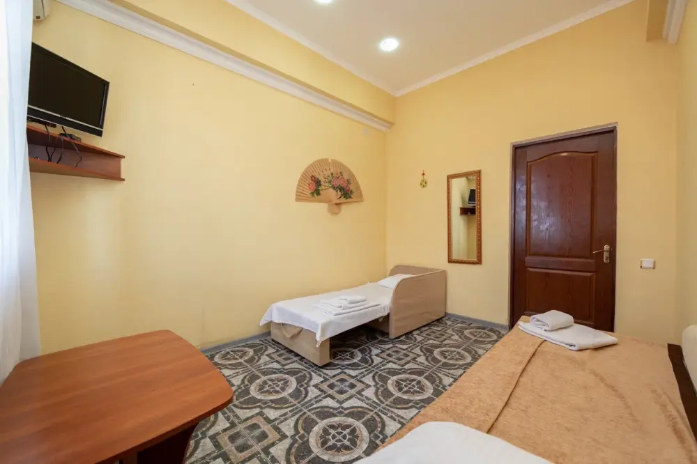 В каждом номере: кондиционер, телевизор, холодильник, санузел с душем, холодная и горячая вода круглосуточно.