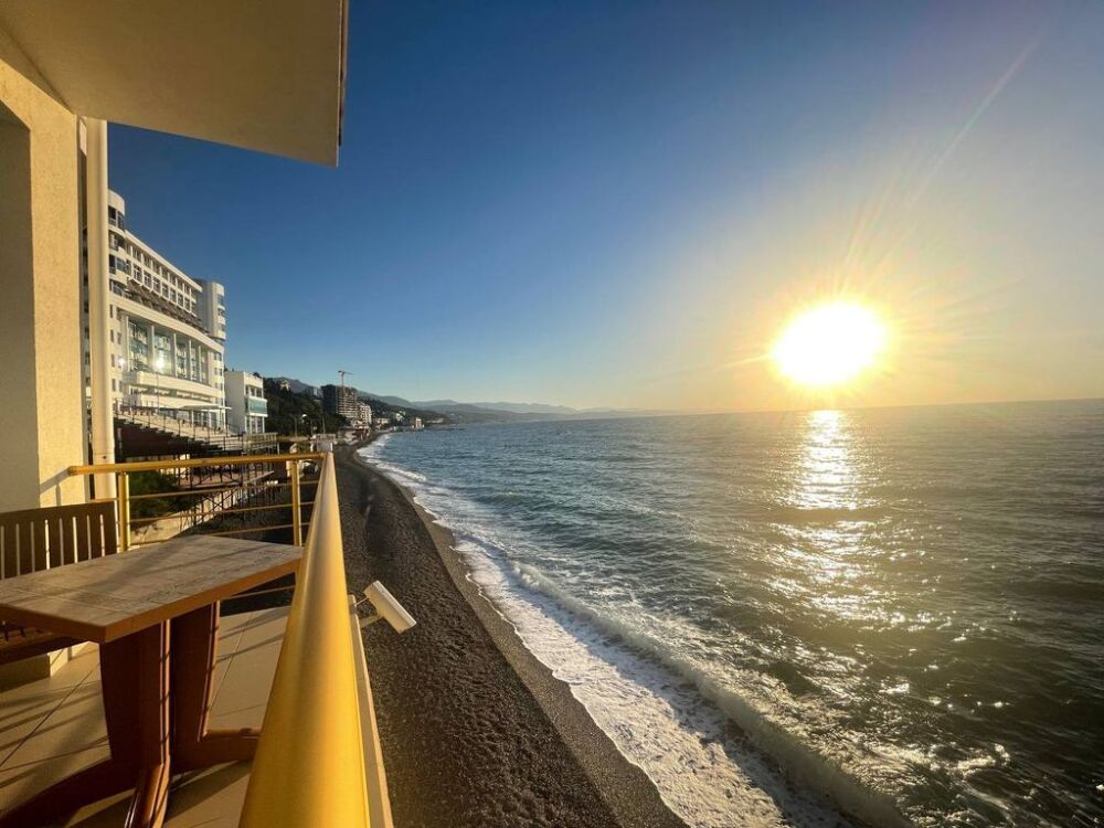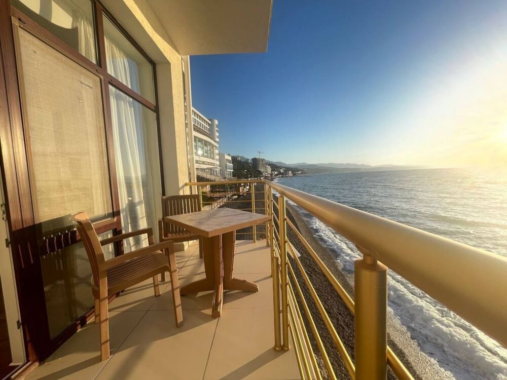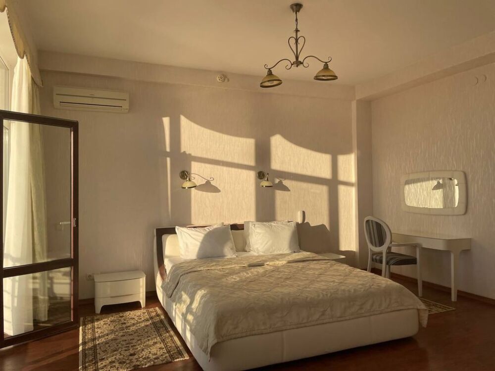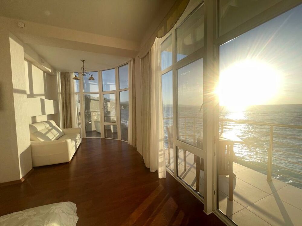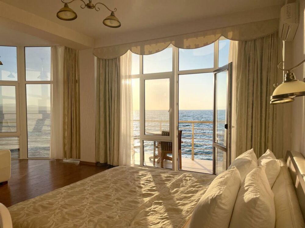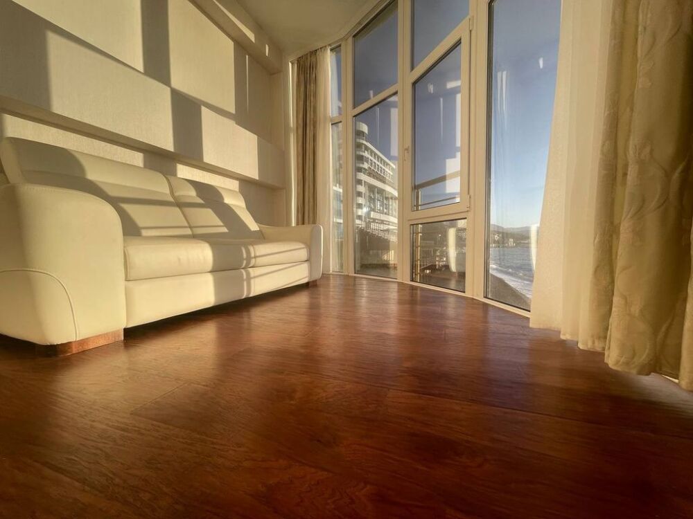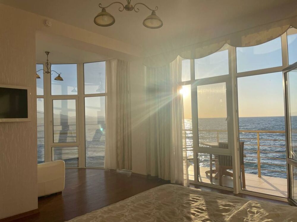 В апартаментах панорамные окна, что позволило развернуть обзор прямо из номера и дало дополнительное ощущение света и пространства.