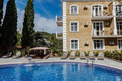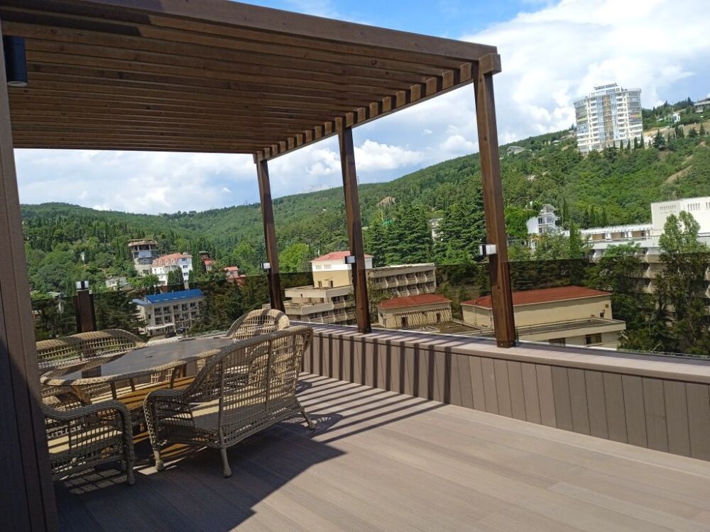 Терраса. Вид на море, горы, кипарисы.