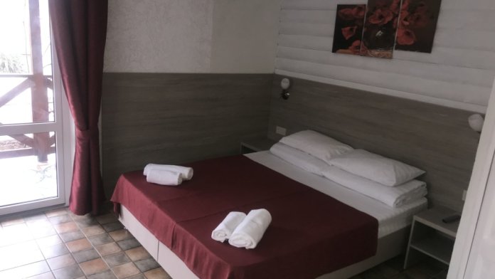Уютная гостиница оснащена всей необходимой мебелью и техникой, и предлагает семейный отдых в номерах категории «Номер-студио с террасой», «Апартаменты с террасой». На территории располагаются: собственное кафе, открытый бассейн, стоянка, русская печь, мангалы, барбекю, экскурсионное обслуживание.