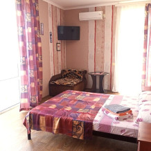 В каждом номере и на территории дома мы постарались создать определенный стиль, чтобы Ваш отдых был приятнее. Во всех номерах имеется кухня или кухонная зона с набором посуды, эл. чайник, эл. плитка, свч-печь (кроме номера «Гербера»), балкон (кроме номера «Гербера»), телевизор, кондиционер, Wi-Fi, холодильник. В каждом номере свой санузел с душем и феном. Горячая и холодная вода постоянно.