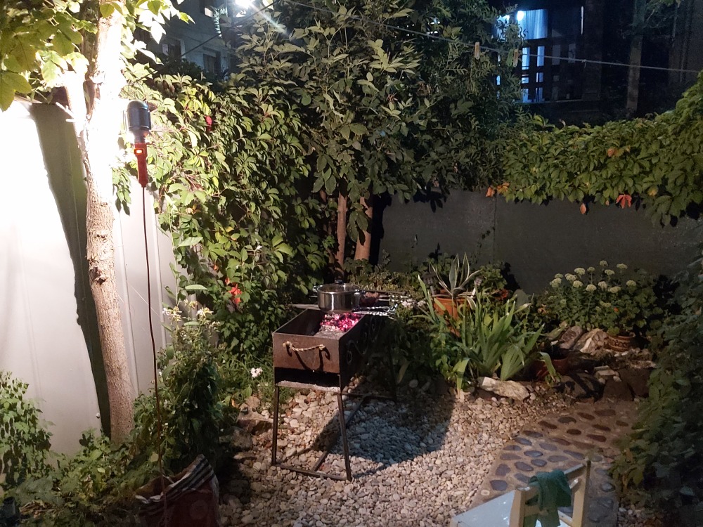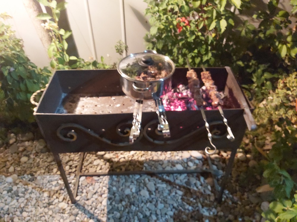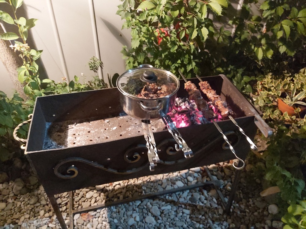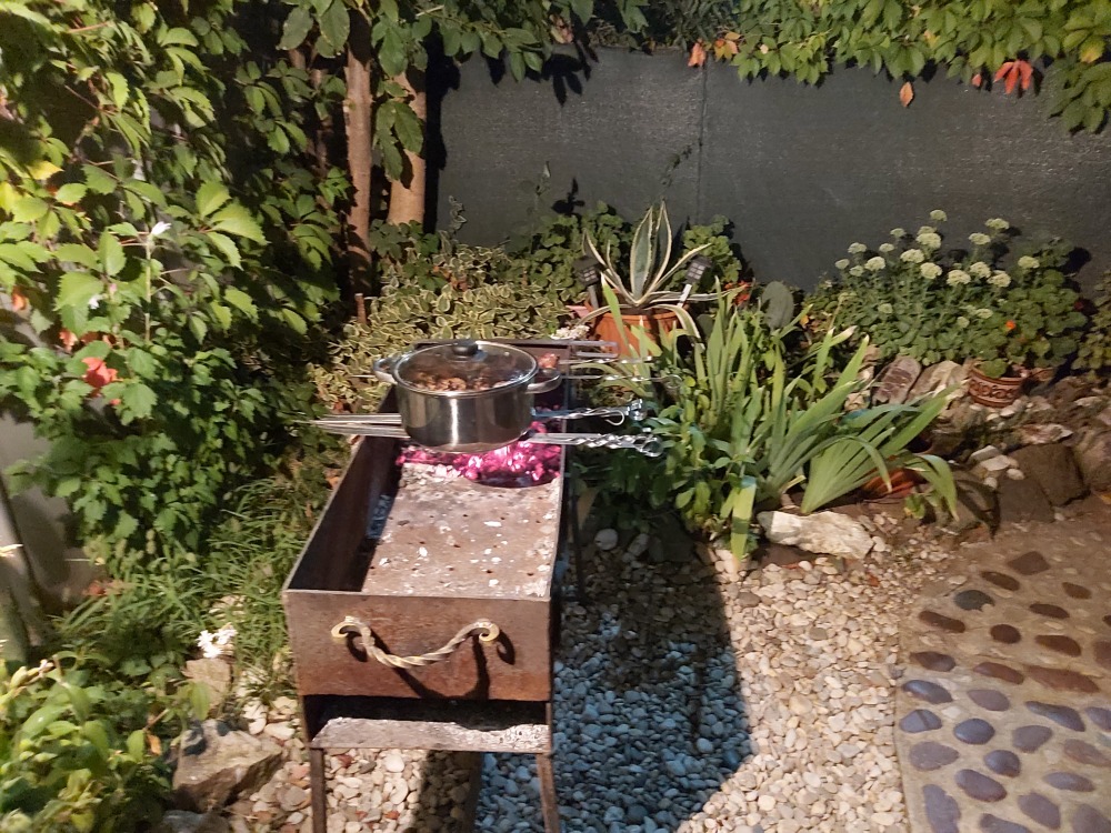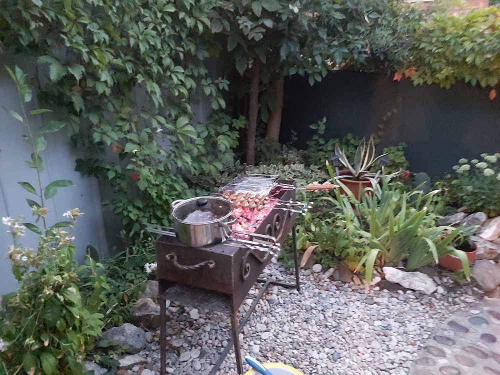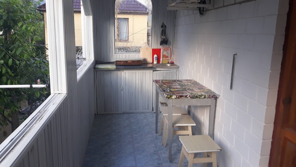 - кухня во дворе (холодильник, раковина, рабочий стол, посуда в комплекте, газовая плита);