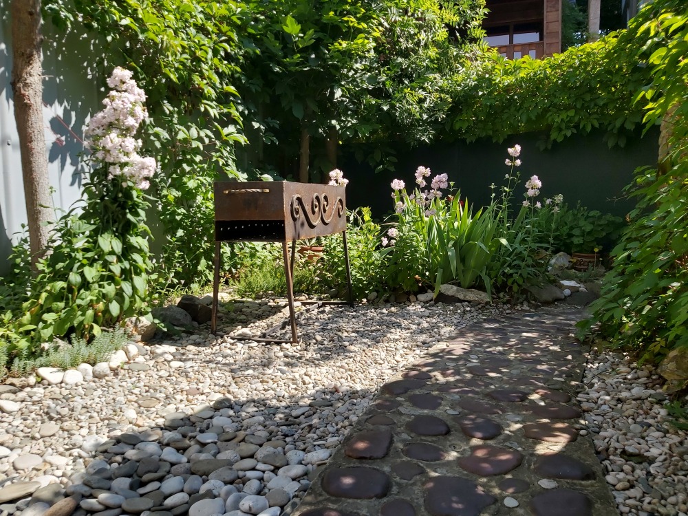 Со своим уютным огороженным отдельным двориком, летней кухней, беседкой для обедов во дворе для первого этажа и террасой с мини-кухней для второго этажа.