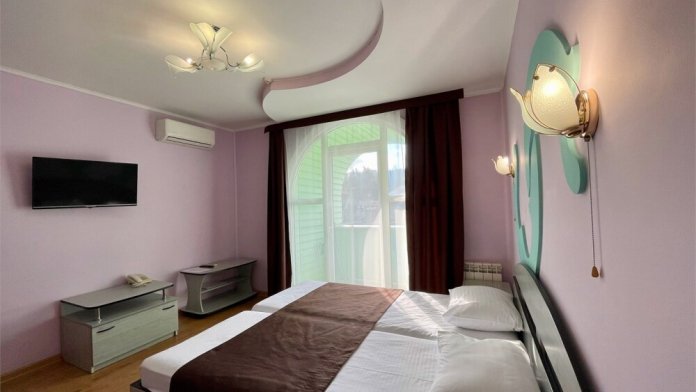 В номере имеются все удобства, установлена односпальная кровать. Небольшой балкон с видом на речку.