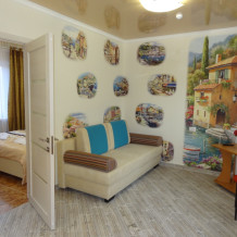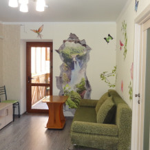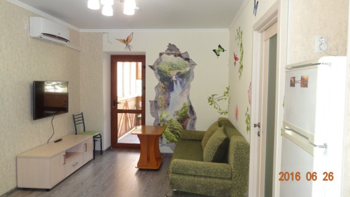 Первая комната это мини-кухня и гостевая зона с диван-кроватью.