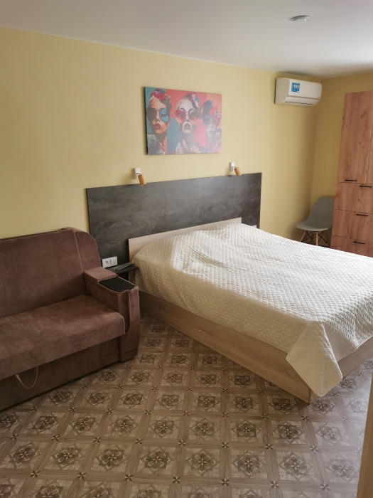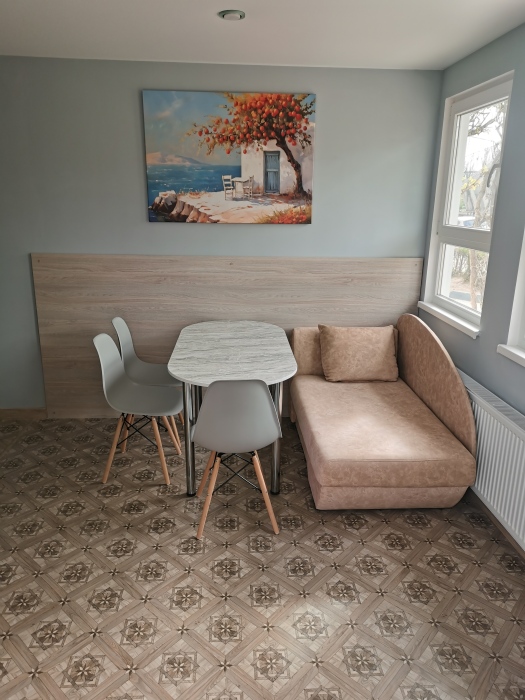 Отдельно стоящий двухкомнатный номер, площадью 50м2., находящийся прямо на берегу моря. Номера расположены на первом и втором этажах. Вид на море и пешеходную зону.