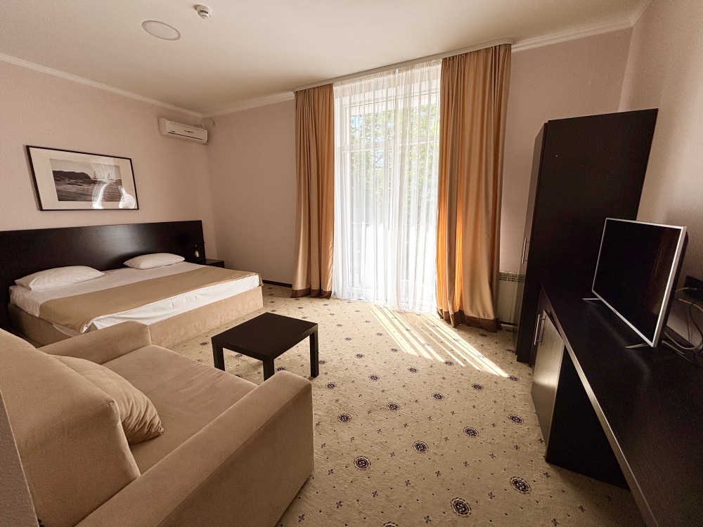 Современный отель с уютными номерами располагает к комфортному семейному отдыху. Рядом замечательный, благоустроенный песчаный пляж «Учкуевка», детский парк и вся инфраструктура города: магазины, рынок, аптека, поликлиника, развлечения.