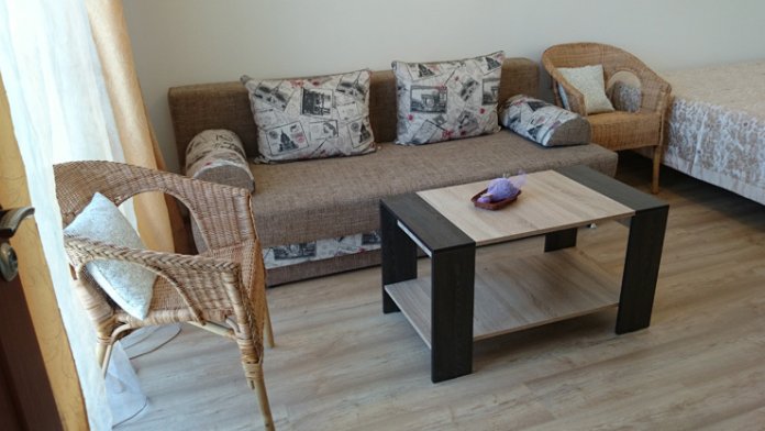 – двуспальная кровать с ортопедическим матрасом, раскладной диван, платяной шкаф;