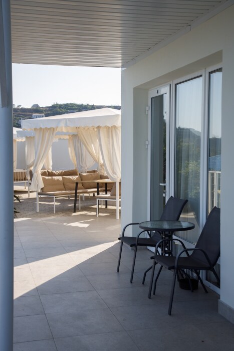 Уютный двухкомнатный просторный номер с гостиной и собственной террасой, панорамным видом на море, расположенный на 2 этаже корпуса отеля. Оптимальный вариант для троих гостей, семей с детьми или для тех, кто хочет разместиться в более просторном номере