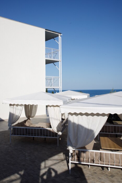На территории отеля имеется мангальная зона, со всей необходимой посудой. Вы можете наслаждаться приготовленной Вами едой и прекрасным видом на море в наших восточных беседках, которые предоставляются в пользование наших гостей абсолютно бесплатно.