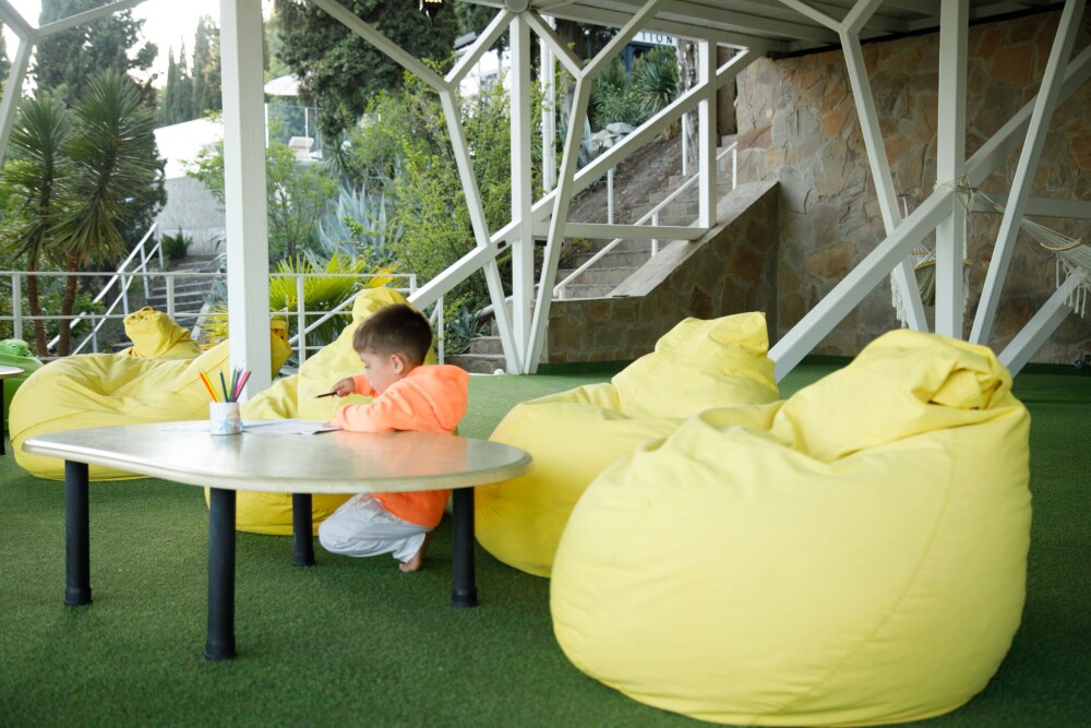 Релакс-зона - здесь, лёжа в гамаке, Вы можете наслаждаться чтением книги из нашей мини-библиотеки под шум морского прибоя. Также наша релакс-зона очень удобна для занятий йоги. Мы с радостью предоставим Вам карематы и гантели.