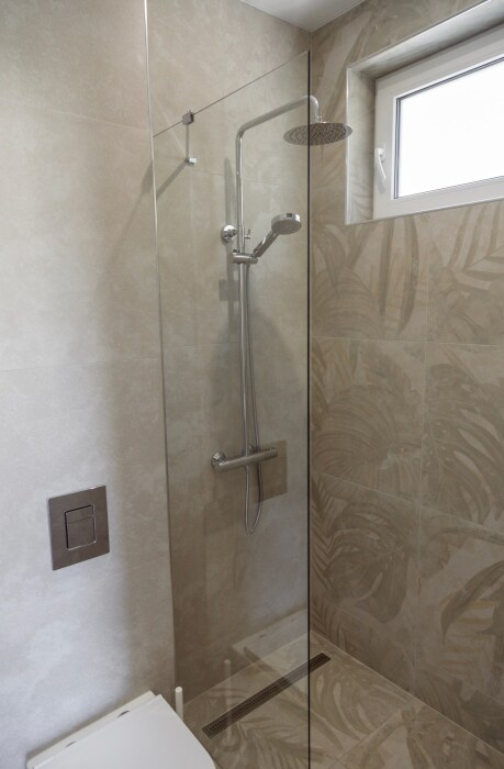 2-спальная кровать (имеются номера с одноместными кроватями), тумбочки, столик, шкаф, кабельное ТВ, стол со стульями (на веранде), холодильник, кондиционер, электро чайник, санузел (душ, унитаз, умывальник), горячая и холодная вода, открытая веранда с видом на море.