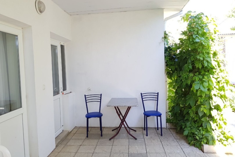 Номер с отдельным входом и собственной террасой. В номере: две односпальные кровати (или одна двуспальная), прикроватная тумбочка, стол, 2 стула, холодильник . Санузел- душевая кабина, туалет, умывальник, зеркало. Выход на внутренний двор. Площадь номера 10 кв.м