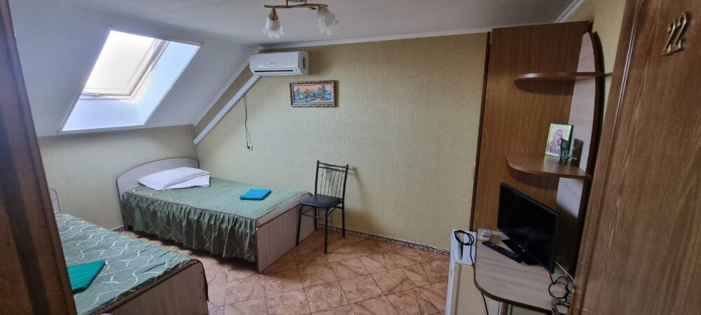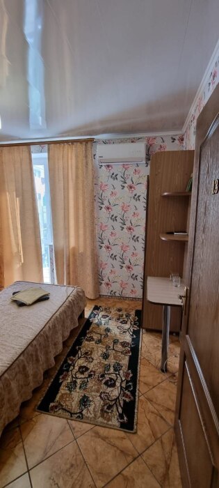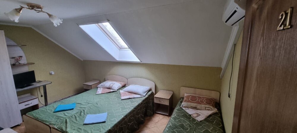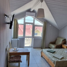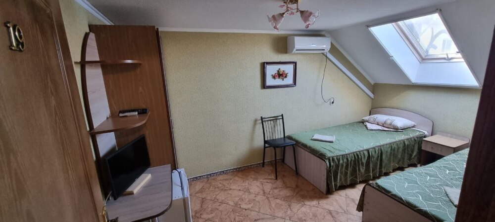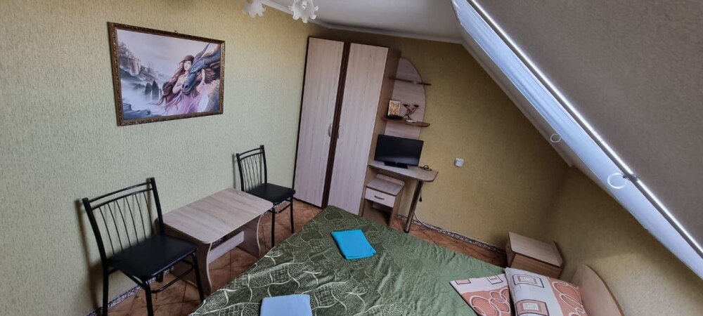 Номер на последнем этаже с мини-кухней. Номер полностью занимает пятый этаж гостевого дома. В номере не жарко.