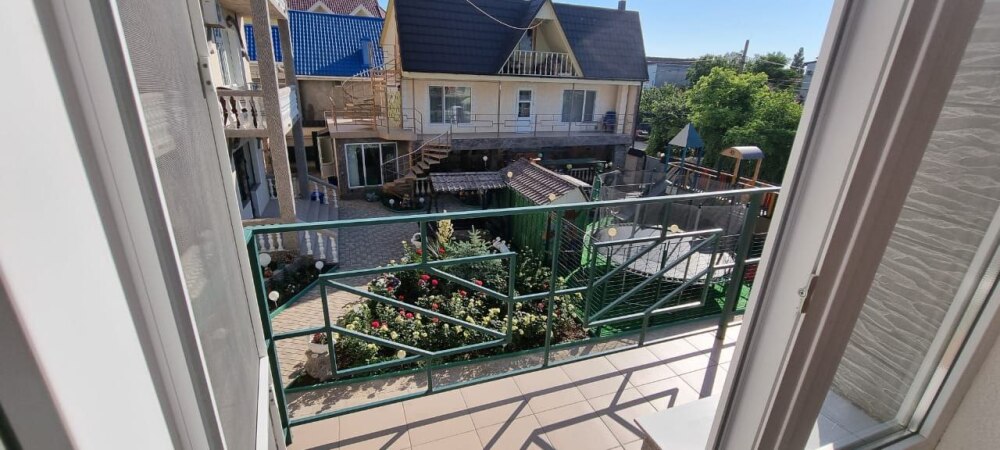 Номера в нашем новом корпусе «Вилла Людмила». У корпуса отдельный двор с маленькой детской площадкой. Корпус находится в 50 метрах от главного здания. Во дворе веранда со столиками