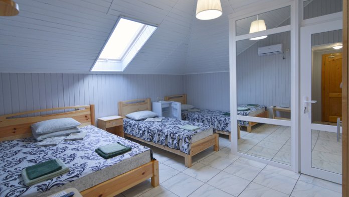 На этаже своя кухня, балкон, терраса со столиками, два раздельных 3-4-местных номера люкс. В каждом свой санузел, жк-тв, кондиционер, холодильник.