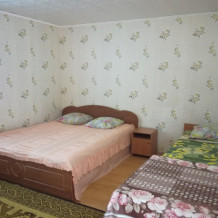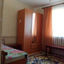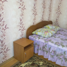 Трехместные номера два варианта . Вариант №1: односпальные кровати 3 шт. Вариант №2: 1 двухспальная кровать и 1 односпальная. Санузел и душевые общие - во дворе.