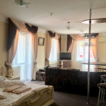 В номере: двуспальная кровать, мягкий уголок, санузел с душевой кабиной, кондиционер, холодильник, сейф, ж/к телевизор, барная стойка, чайник, микроволновка, wi-fi.