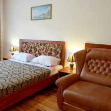 Номера класса «люкс» – гордость гостевого дома. Они оборудованы кондиционерами, новой мебелью, большими окнами и балконами на уровне европейских стандартов. Различие лишь в количестве мест в номере.