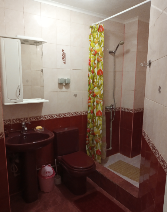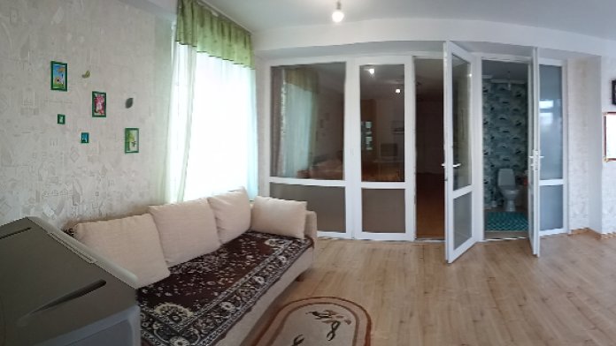 Две изолированные комнаты и одна проходная, совмещённая с кухней. 2 санузла, один из которых с душем, находится в изолированной спальне, а 2 в проходной комнате. В каждой комнате двуспальные спальные места (одна двуспальная кровать, два раскладных дивана и двухъярусная кровать для детей) - всего 8 мест. Есть возможность поставить раскладушку.
