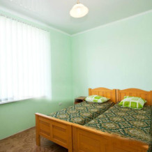 Для размещения отдыхающих наш гостевой дом всегда рад предложить Вам по домашнему уютные, однокомнатные двух-, и трехместные номера категории «Эконом» и «Стандарт», а также двухкомнатные номера с собственной кухней категорий «Люкс». Во всех номерах есть все необходимое для комфортного проживания: современная мебель, сплит-система или вентилятор, телевизор, Wi-Fi интернет, сейф.