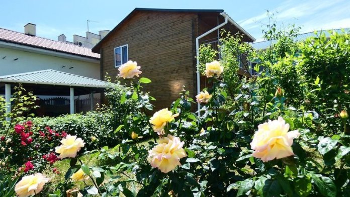 На территории нашего гостевого дома, для удобства наших постояльцев, мы оборудовали места для отдыха с беседкой, а утопающий в зелени и цветах двор, не только порадует Вас, но и спасет от летнего зноя. Для маленьких гостей нашего дома есть детский бассейн и качели. На всей территории работает Wi-Fi интернет. Любителям шашлычка - барбекю, мангал и шампуры. А также есть общая кухня со всем необходимым для самостоятельного приготовления пищи. А еще всегда вкусно и недорого покушать Вы можете в нашей столовой. Туристам прибывшим к нам на личном авто предоставляется место на парковке.