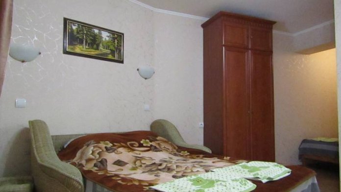Вашему вниманию предлагаются уютные и просторные номера с евроремонтом, оборудованные всем необходимым для комфортного проживания 2−3 человек. В номере есть санузел (душ, туалет, умывальник), двуспальная кровать или две односпальные, детская кроватка, шкаф с встроенным сейфом, холодильник, кондиционер, телевизор, Wi-Fi, журнальный столик, электрический чайник. У каждого номера имеется комфортная, отделанная натуральным деревом веранда с диванчиком, столом и стульями, где обычно наши гости кушают и отдыхают от летнего зноя.