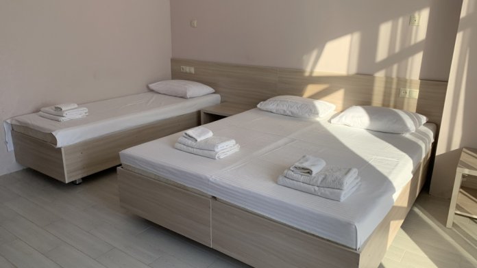 Просторный трехместный номер с балконом, возможно установить дополнительное место - раскладушку.