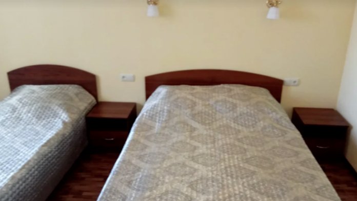 Комната 4- х местная с двухспальной кроватью и 2 односпальными кроватями с ортопедическими матрасами.