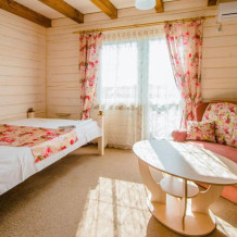 Гостевой дом построен в 2016 году из экологически чистого леса, привезенного из Западной Украины. При строительстве использовались только экологически чистые материалы. Снаружи все выполнено в «баварском» стиле, а внутреннее убранство оформлено в стиле «прованс».