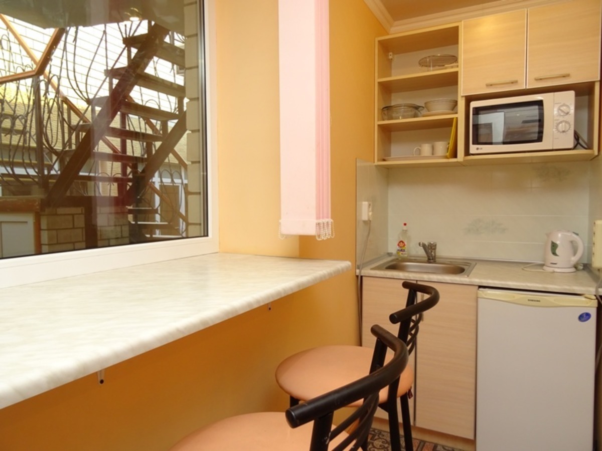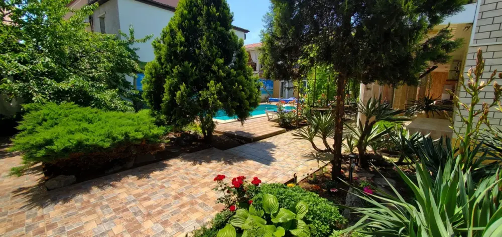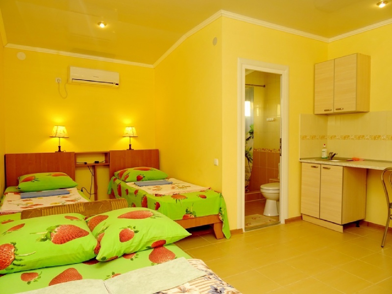 Гостевой дом находится в тихом месте, на территории частного домовладения. Обстановка способствует хорошему домашнему отдыху, большой двор, номера однокомнатные (20-24 м²) разной вместимости.