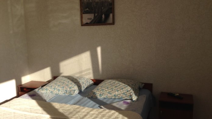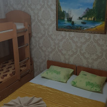 Отдельный комфортный трёхместный номер с своим балконом, рассчитан на семью с двумя детьми (так как в номере стоит двухъярусная кровать), также в номере большой телевизор с интернет телевидением, кондиционер, холодильник, электрочайник, новая мебель, туалет и душ в номере.