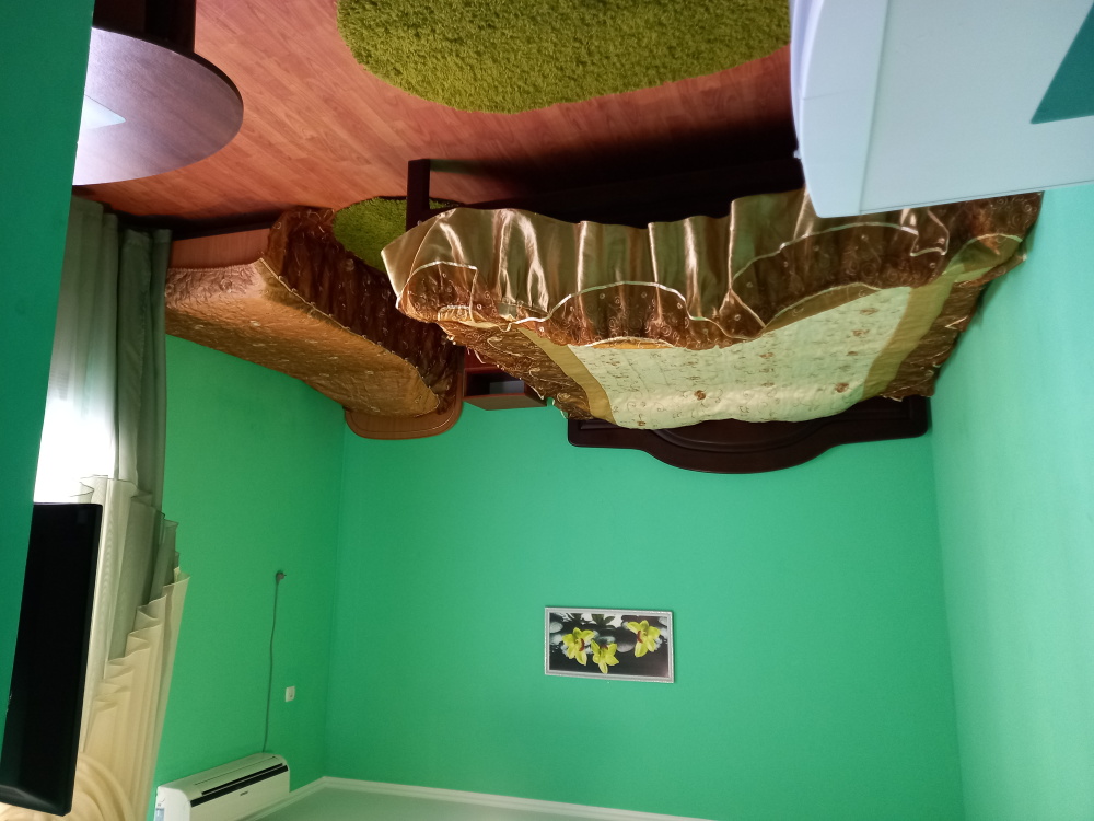 Двухспальная кровать, раскладной диван, шифоньер, прикроватные тумбочки, вешалки для одежды, мягкие табуреты, 2 жк. ТВ, 2 вентилятора, москитные сетки, средства гигиены