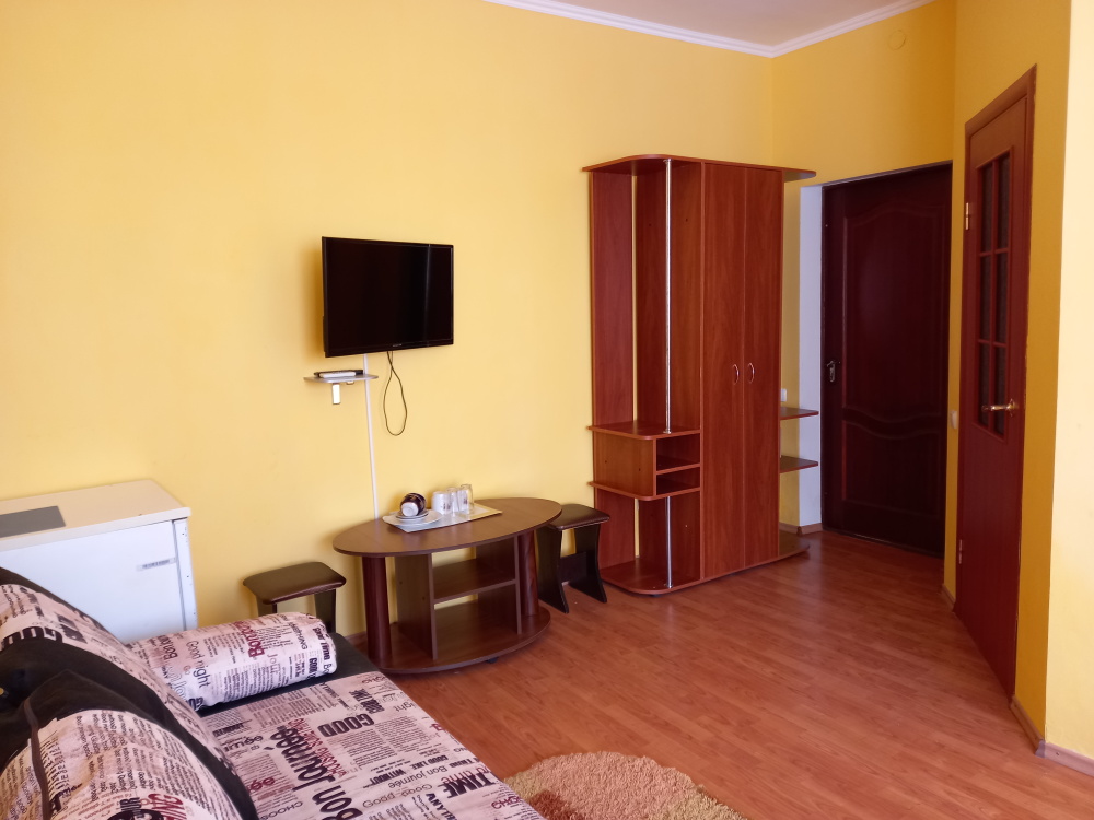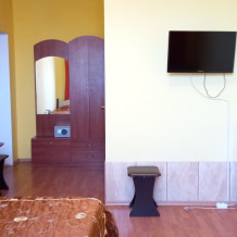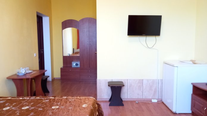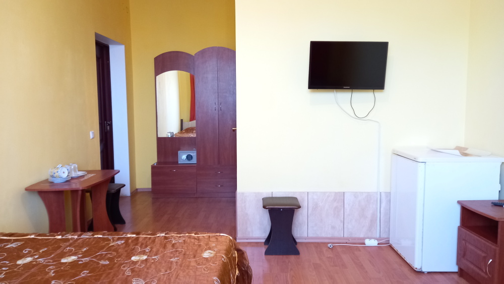 Чтоб Ваш отдых был максимально комфортным все наши номера благоустроены новой мебелью, одно и двуспальными кроватями с ортопедическими матрасами, собственным санузлом с душевой кабиной и предоставляемыми гигиеническими средствами (жидкое мыло, туалетное бумага), плоским телевизором с 28 цифровыми каналами, кондиционером, холодильником, набором чайной посуды (эл.чайник на этаже перед входом в номер), комплектом полотенец (банное, для лица), сейфом с электронным замком. Холодная и горячая вода круглосуточно!