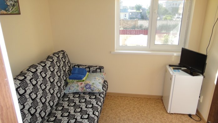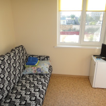 Номерной фонд представлен 1−2−3−4 местными, одно и двухкомнатными номерами. На втором и третьем этажах с балконов открывается живописный вид на море и озеро с лебедями.