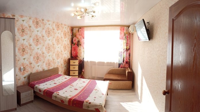 Спальные места: 2 двуспальные кровати (200*140), 2 односпальные кровати. Оснащение: 2 ЖК-телевизора, 2 кондиционера, отдельная кухня (холодильник, эл. чайник, эл. плита, посуда для приготовления), совмещённый санузел (стиральная машина автомат, фен). Холодная и горячая вода круглосуточно.