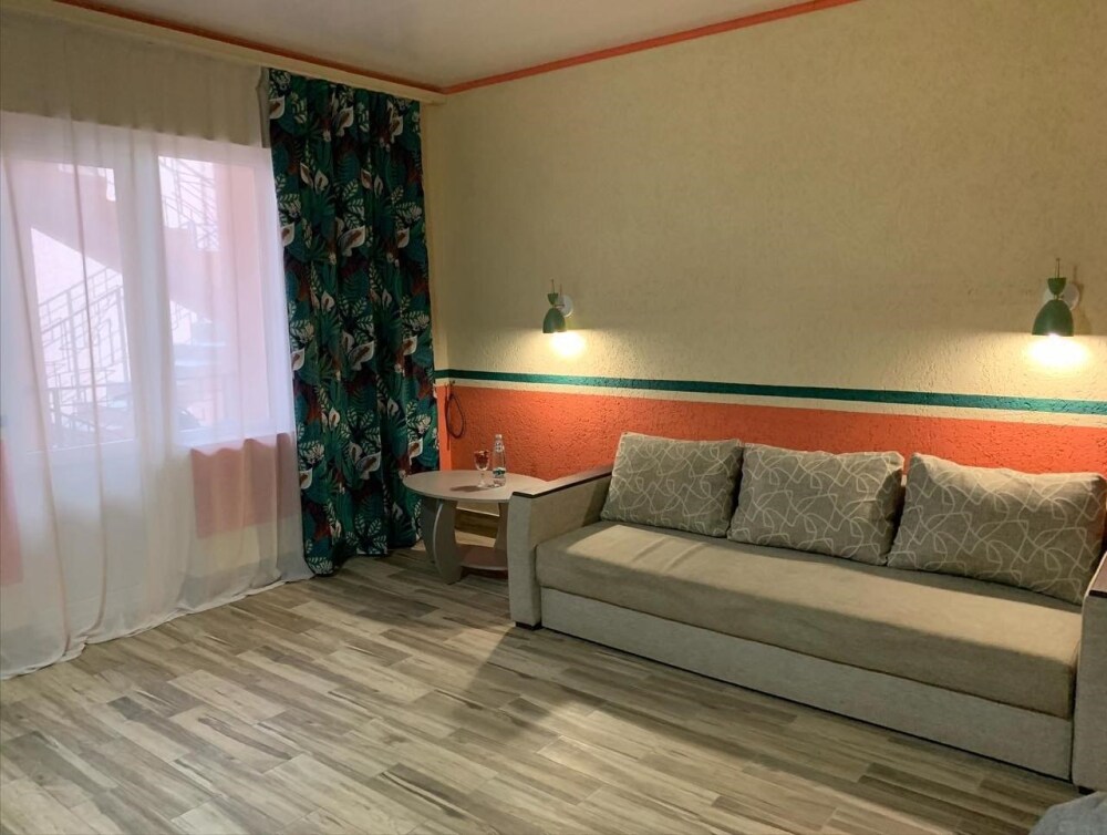 Отель современное трехэтажное здание 2013 года постройки с удобствами во всех номерах. В отеле однокомнатные и двухкомнатные номера, рассчитанные на проживание от 2 до 4-5 человек с возможностью установки дополнительных мест.
