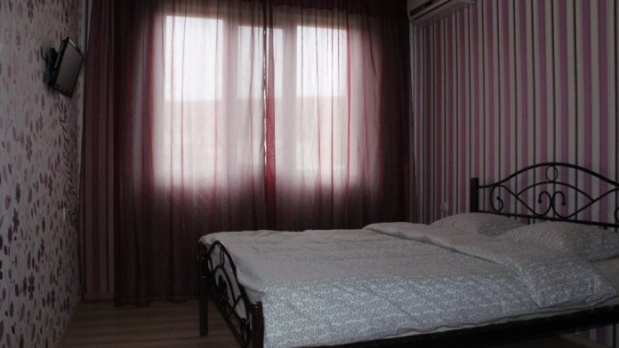 В номерах: личные кухни, санузлы. В каждой комнате кондиционер, ТВ, wi-fi. 2у спальная кровать, шкаф, тумбочки.