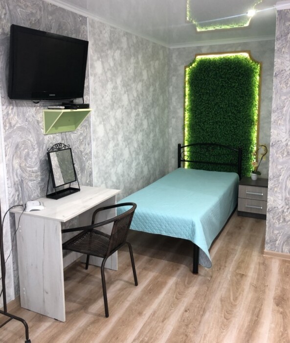 В номере «Люкс» под кухню выделена отдельная комната.Город Керчь-один из самых древних городов России.Здесь множество исторических мест,под Керчью расстелились огромные береговые линии Черного и Азовского морей,безлюдных пляжей.