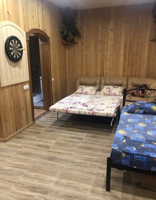 В номере: 2-спальняя кровать и диван, кухонная зона, личный санузел, кондиционер, телевизор, интернет.