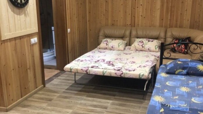 В номере: 2-спальняя кровать, 2-спальный диван, столик, кухонная зона, личный санузел, кондиционер, телевизор, интернет.
