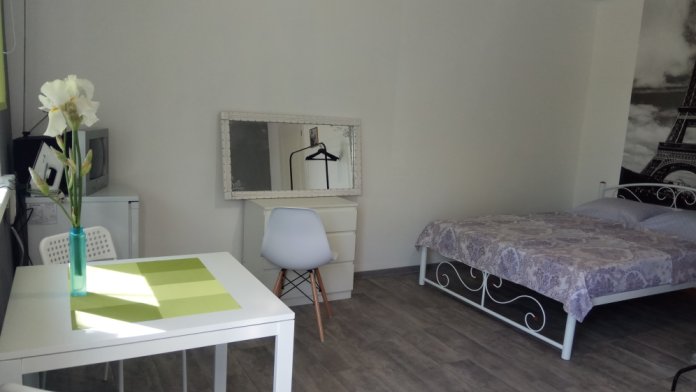 Однокомнатный номер с удобствами. В номере кондиционер, двухспальная кровать (дополнительное место- еврораскладушка), кондиционер, холодильник, горячая, холодная вода постоянно, Wi-Fi.